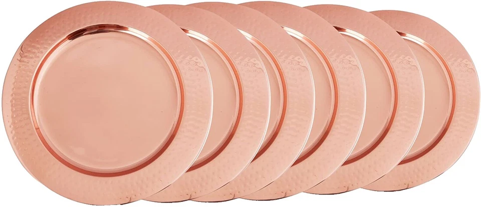 Placas de cargador de borde de collar decorativo holandés antiguo de 13" (juego de 6), cobre (OS968)